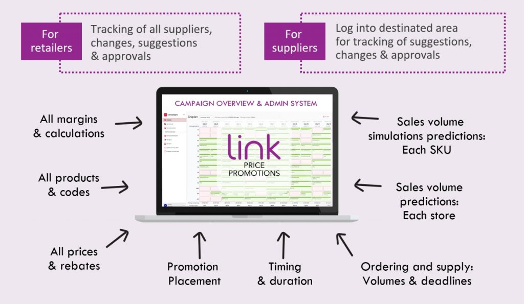 Retailers & suppliers are using their excel sheets and any other information to plan Price Promotions. The results is hours and hours of work, double work, inaccuracy, consequential error and nagging. We take away all the excel sheets, unnecessary work and errors – and move these processes to the cloud. They are very simple to use and simple to understand software tools.